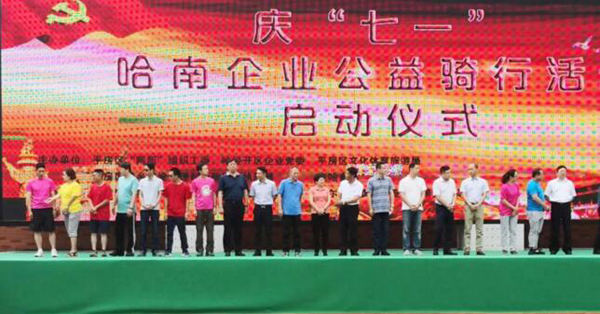 為紀念建黨97周年,由平房區兩新工委、哈經開區企業黨委、區文化體育旅游局主辦的“慶七一”哈南企業公益騎行活動于2018年6月30日在哈南健身廣場隆重舉行。平房區委書記、哈經開區黨工委書記劉興閣為巡游隊伍發令、領騎。區委副書記李兵代表區委、區政府為活動致辭。公司黨委副書記、工會主席董志宏出席啟動儀式。